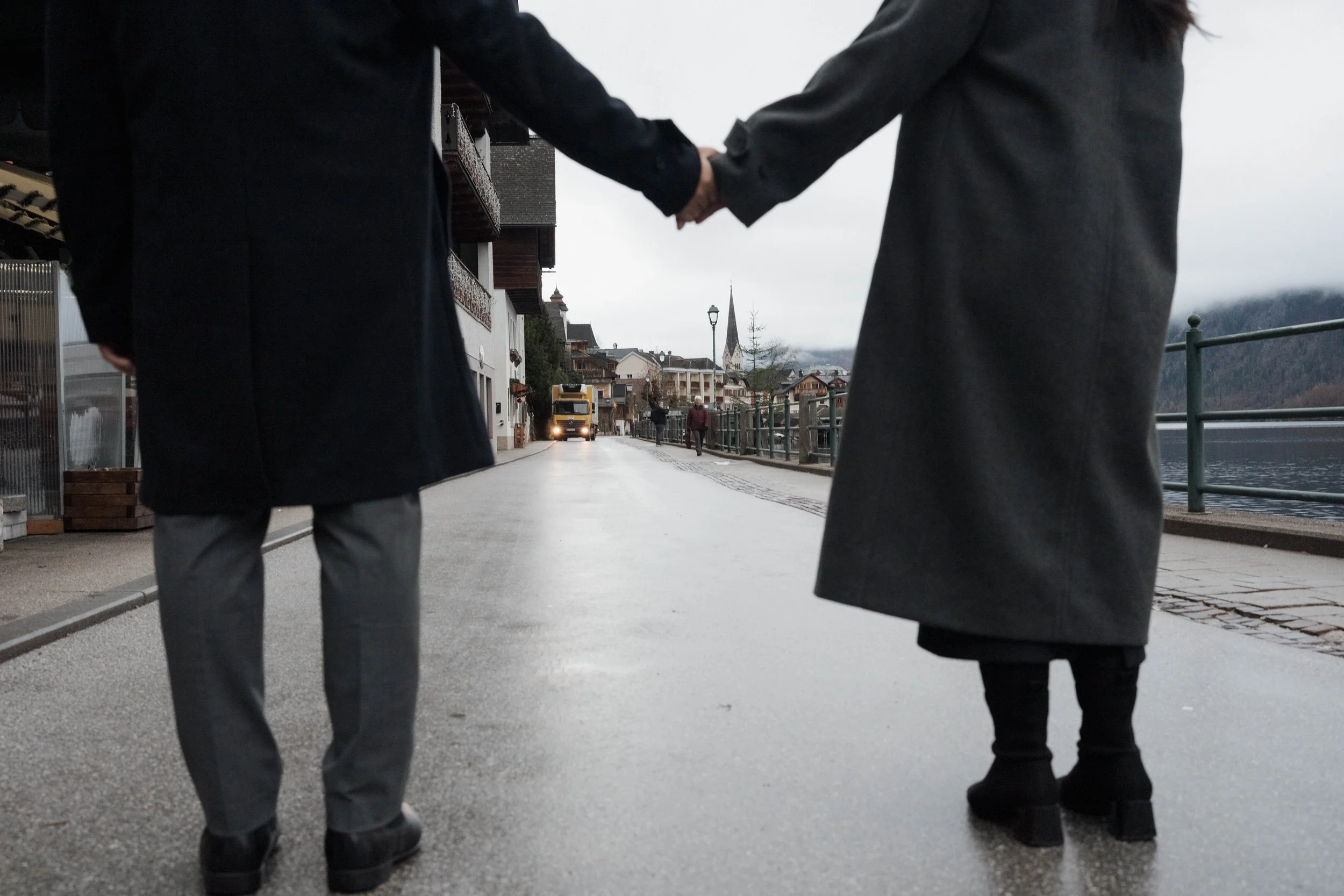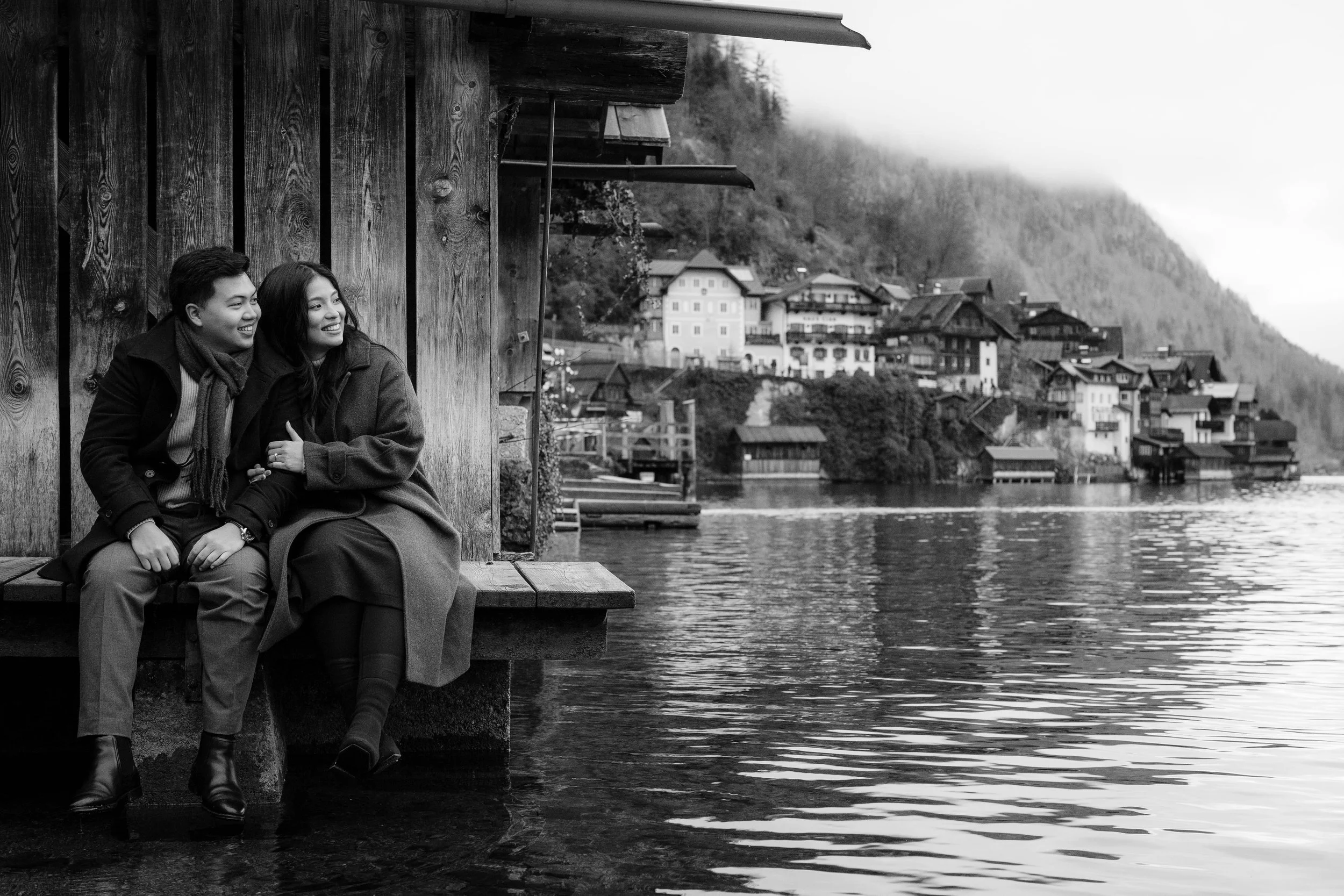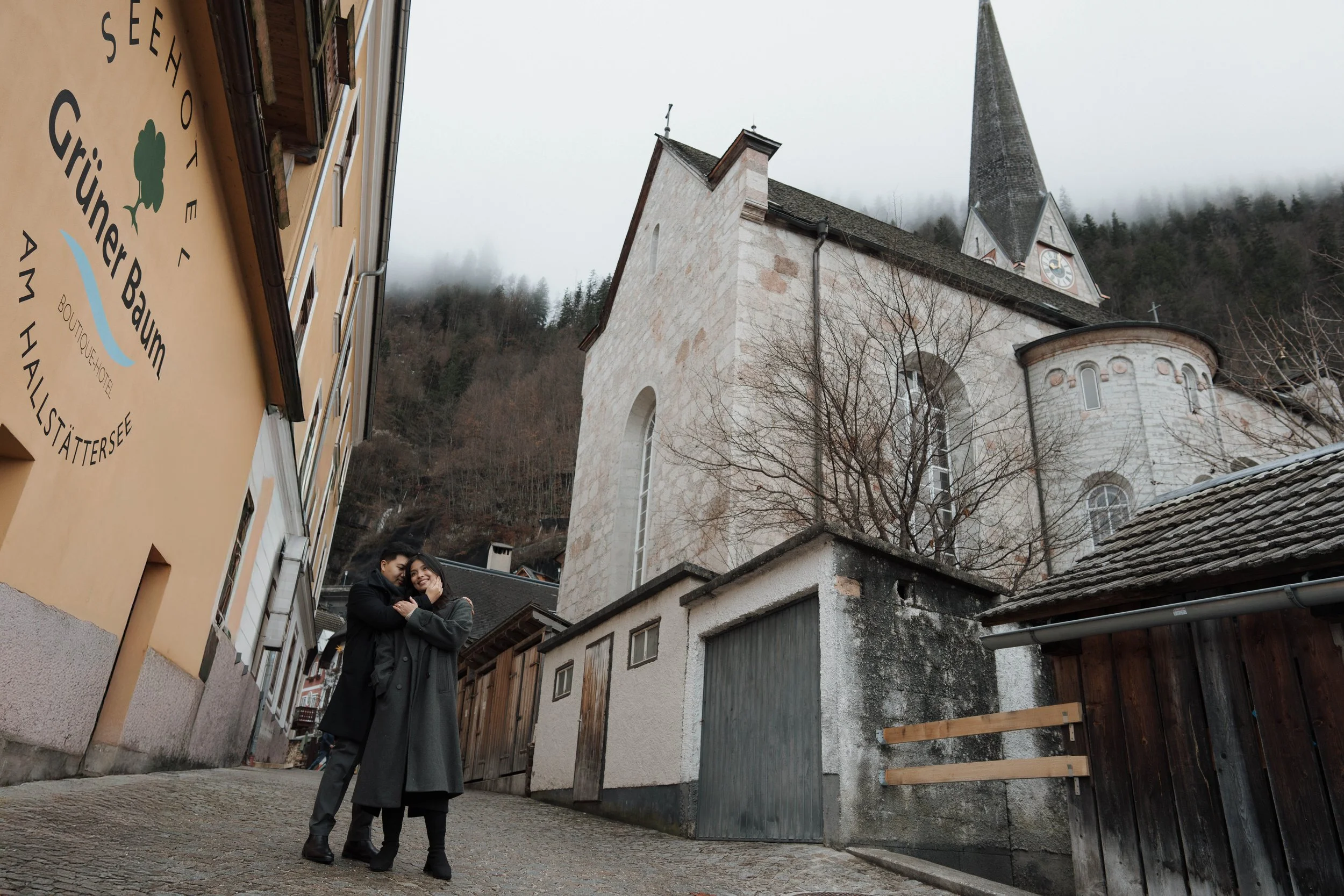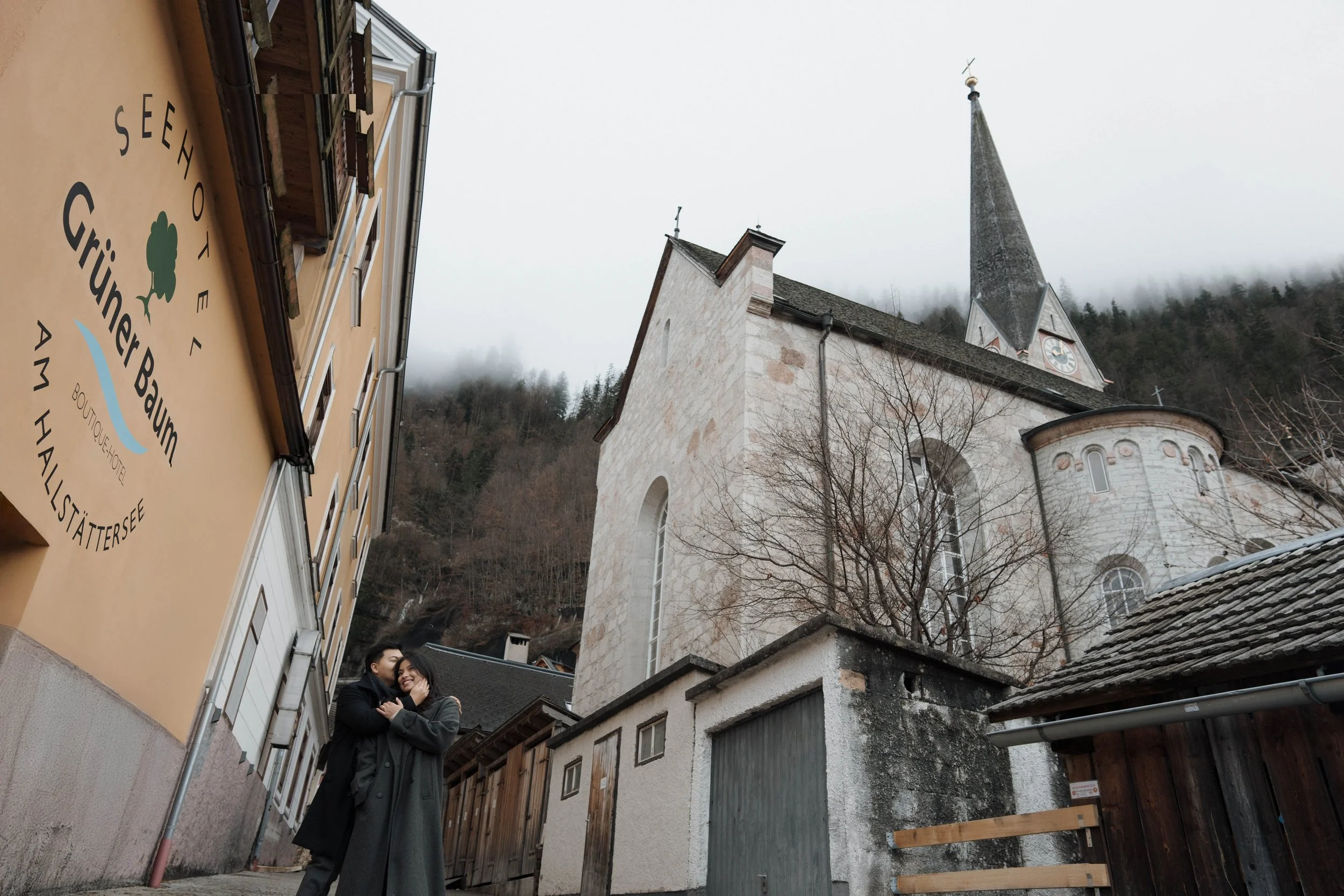 After Myrna said yes, we wandered through the village, stopping at some of Hallstatt’s most beautiful corners for photos—from the lakeside paths to the postcard views near Marktplatz Hallstatt. A truly special moment in one of the most romantic places in the world.