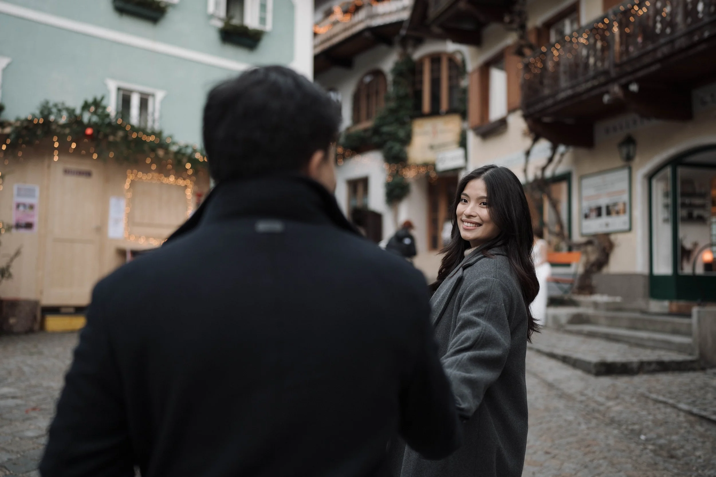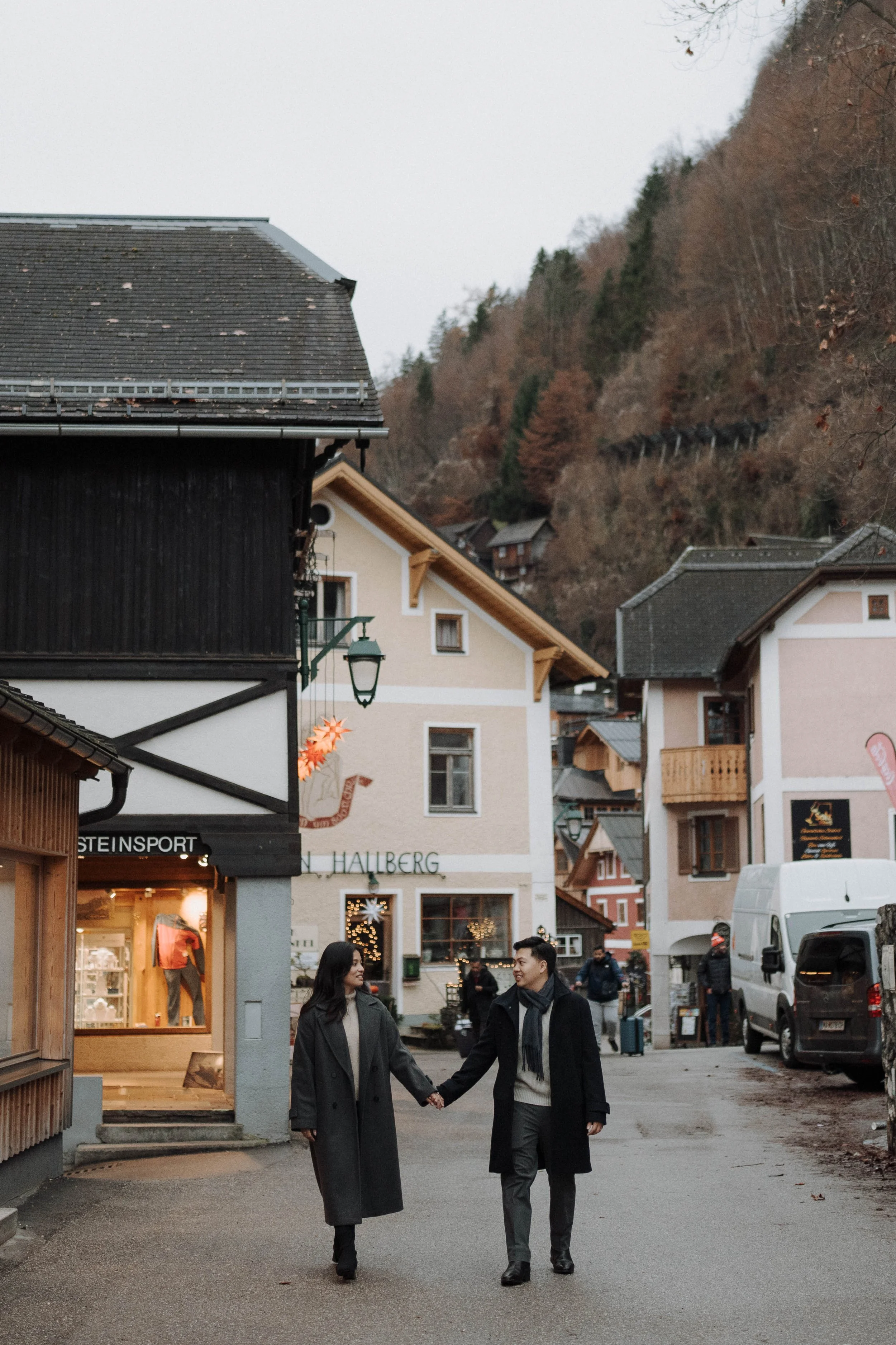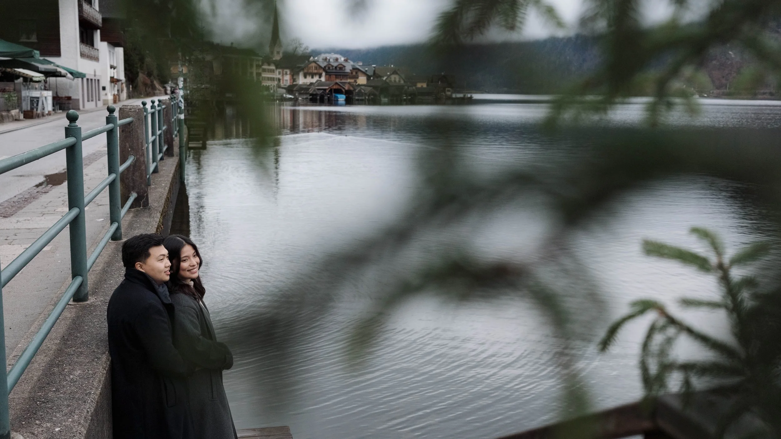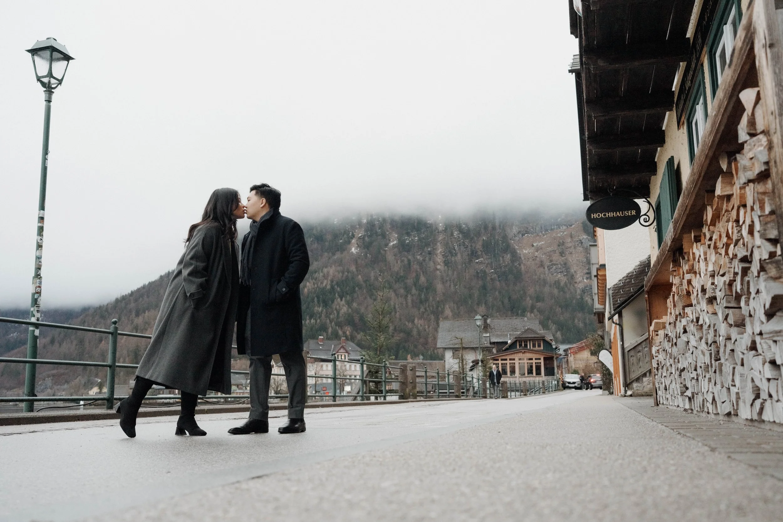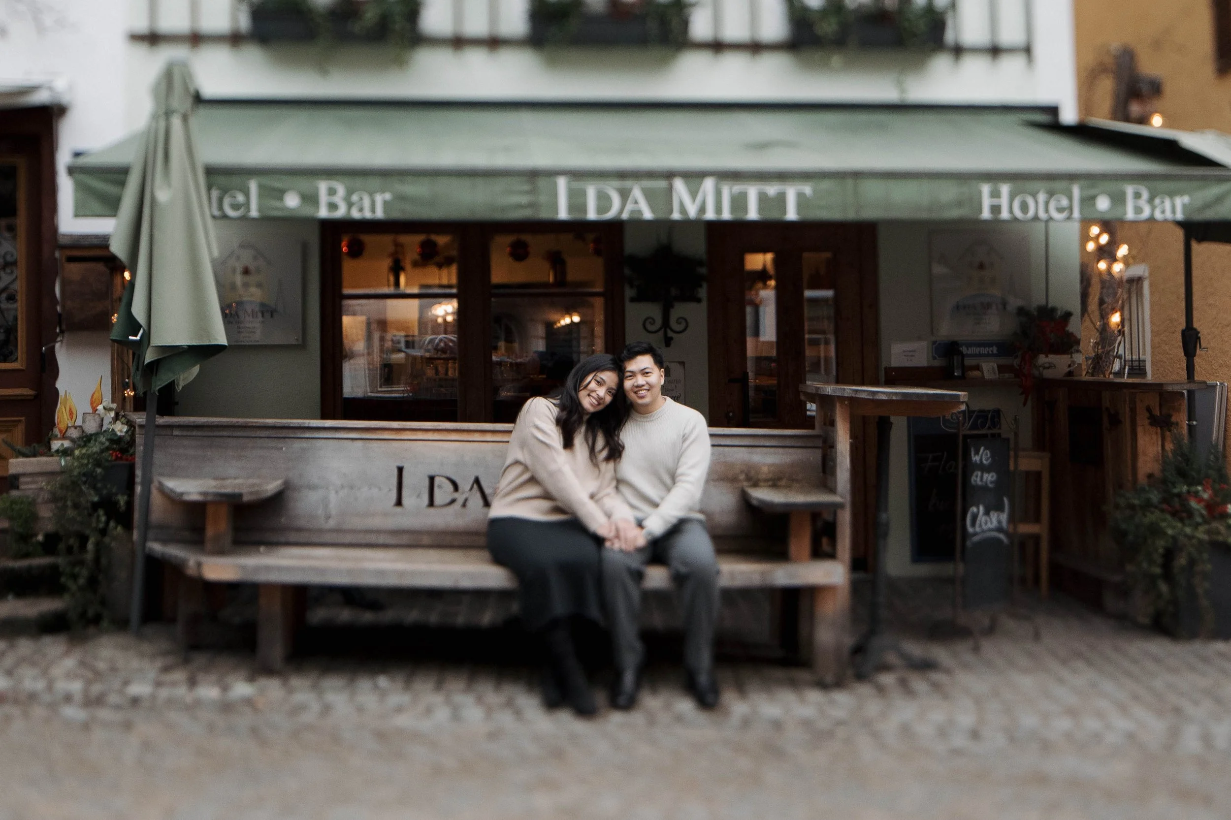 After Myrna said yes, we wandered through the village, stopping at some of Hallstatt’s most beautiful corners for photos—from the lakeside paths to the postcard views near Marktplatz Hallstatt. A truly special moment in one of the most romantic places in the world.