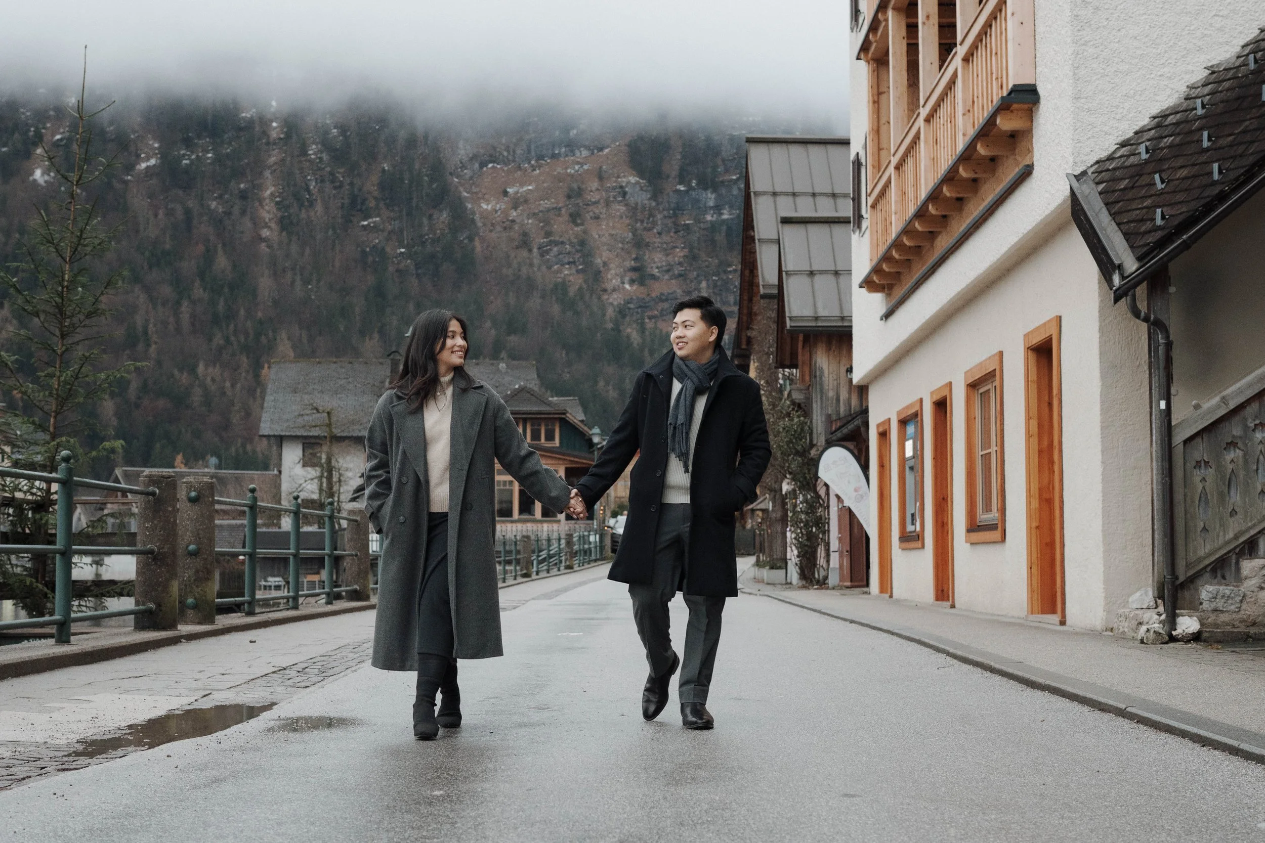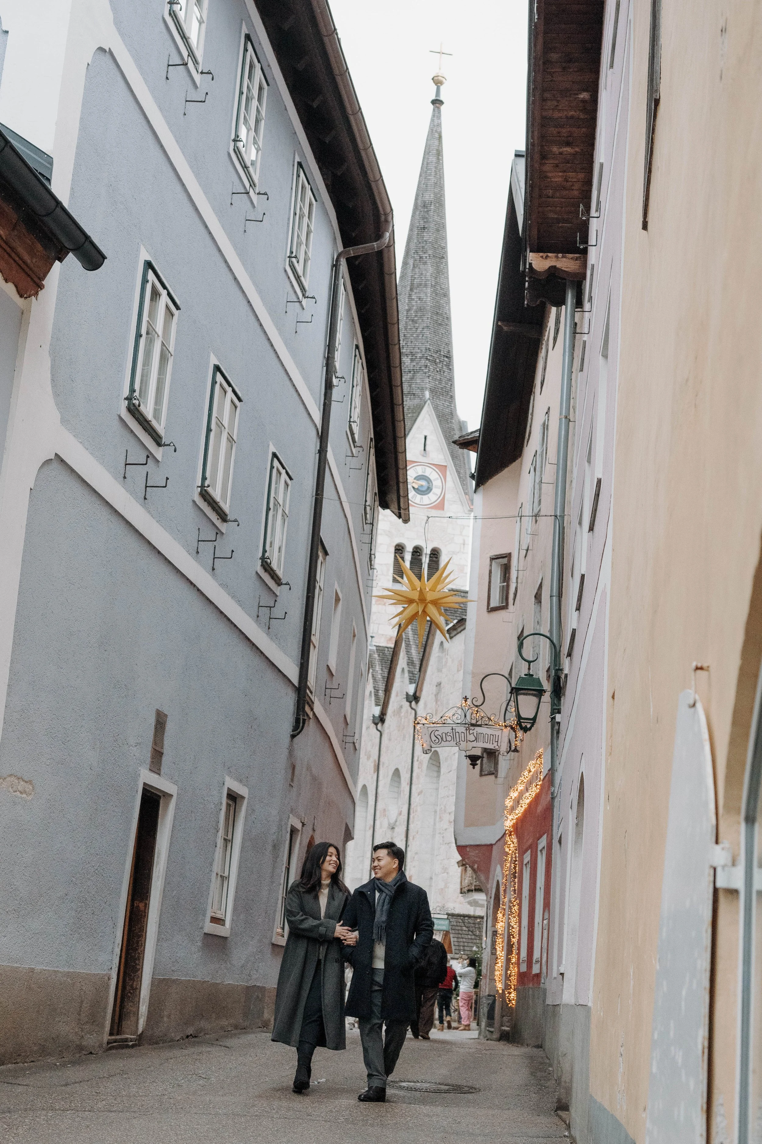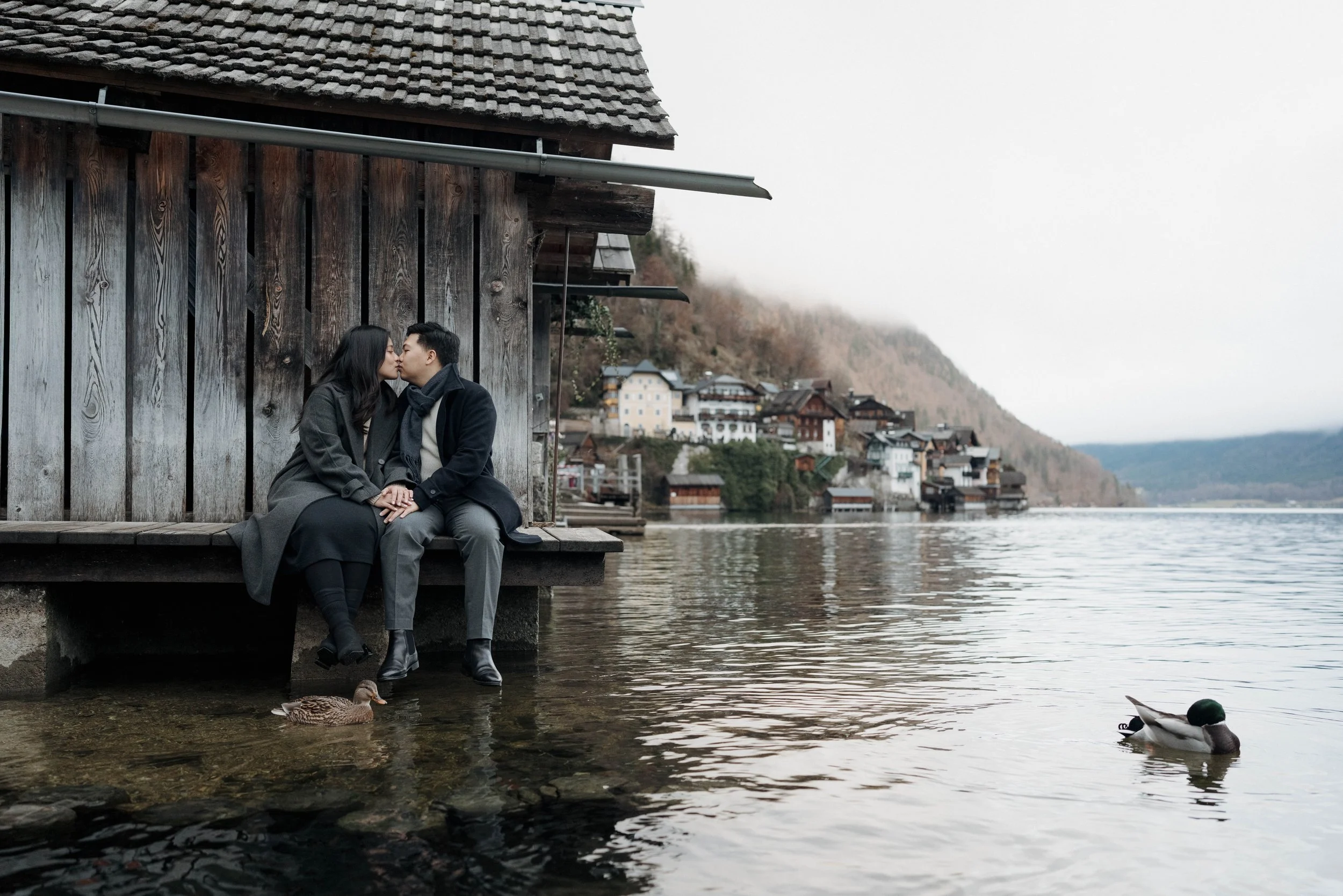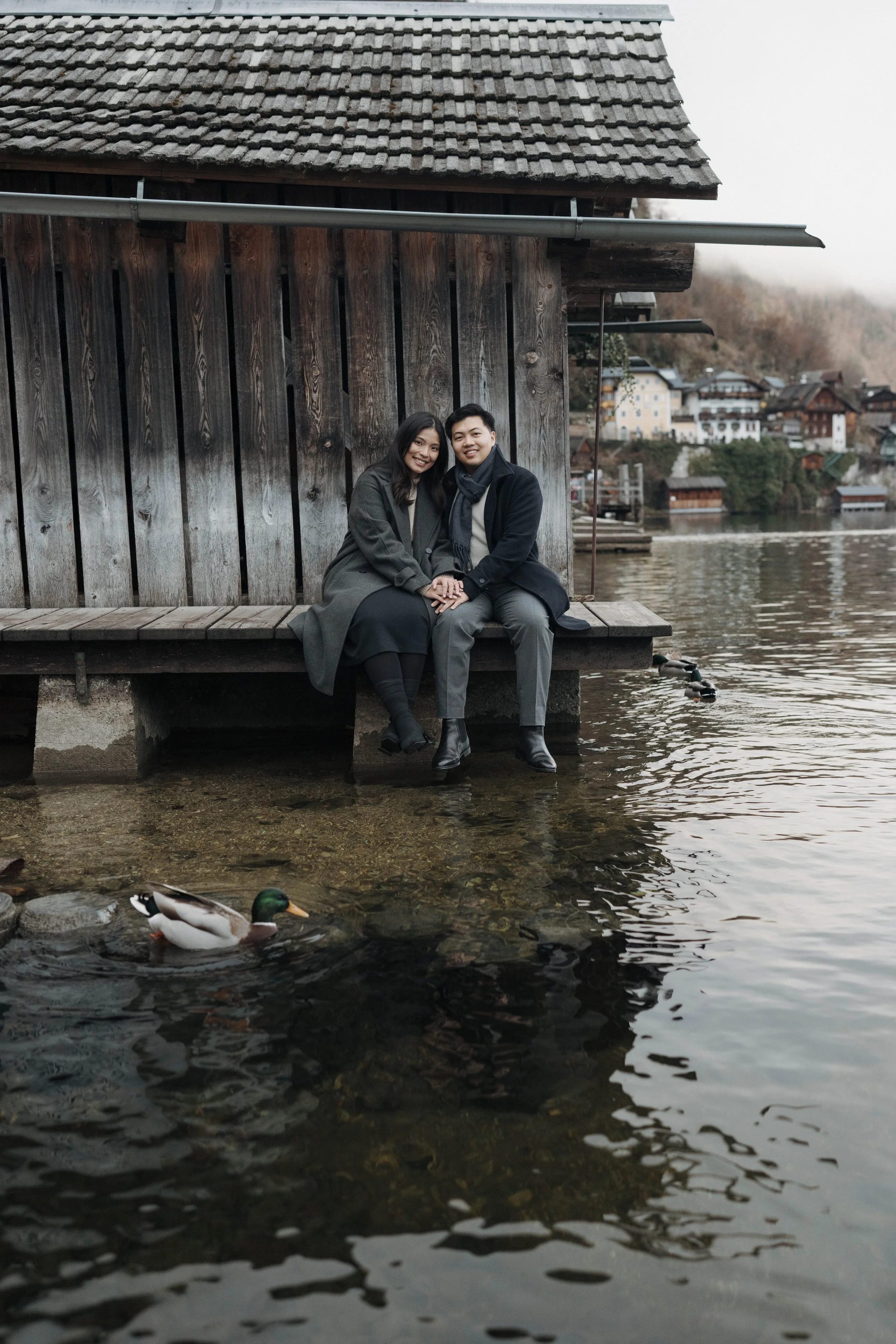 After Myrna said yes, we wandered through the village, stopping at some of Hallstatt’s most beautiful corners for photos—from the lakeside paths to the postcard views near Marktplatz Hallstatt. A truly special moment in one of the most romantic places in the world.