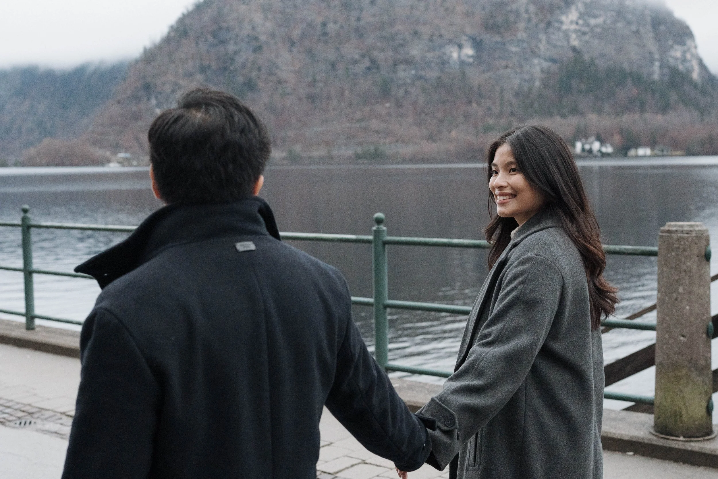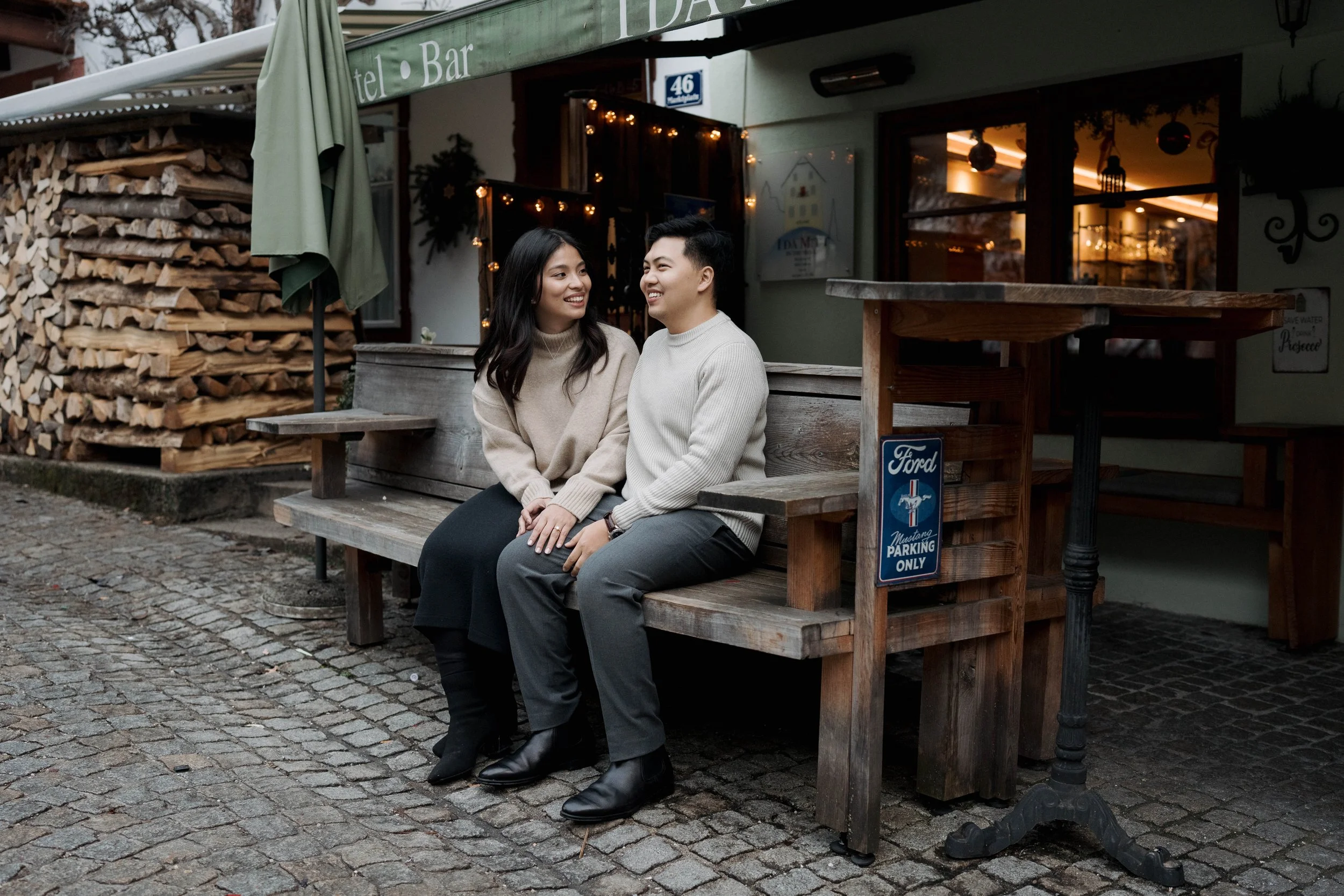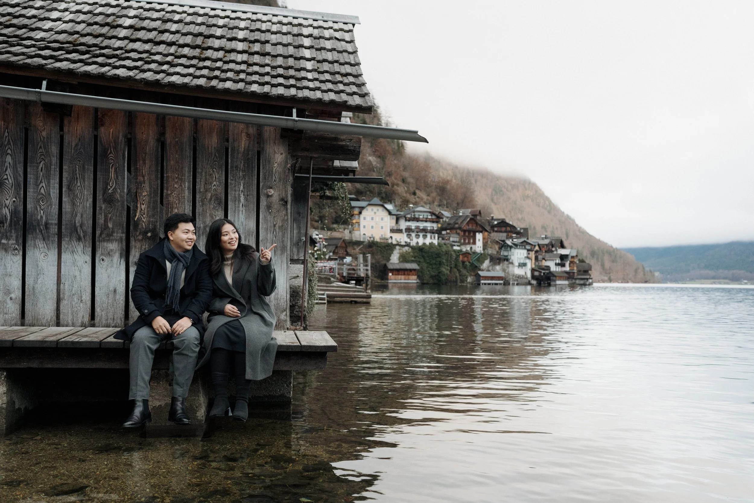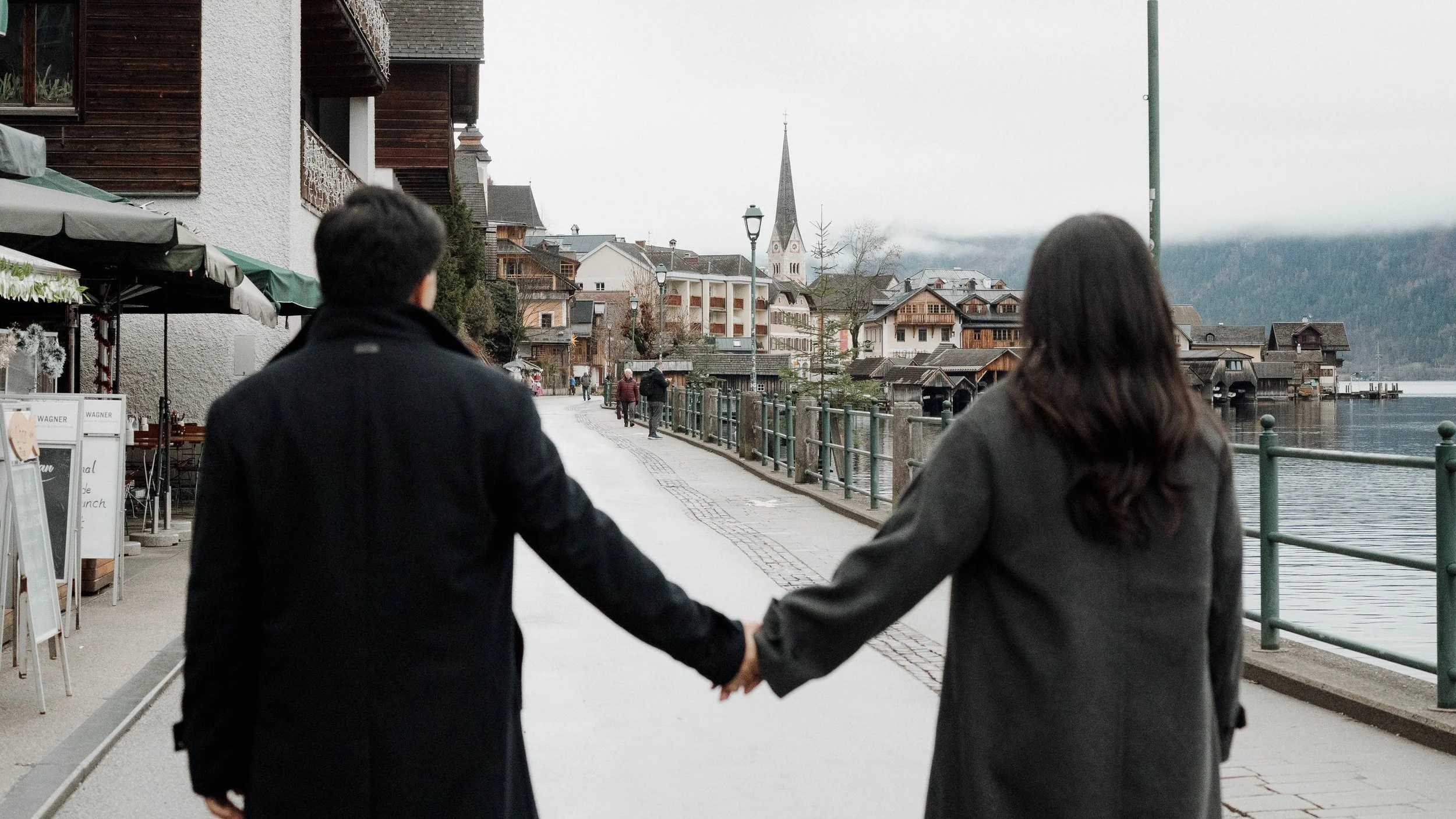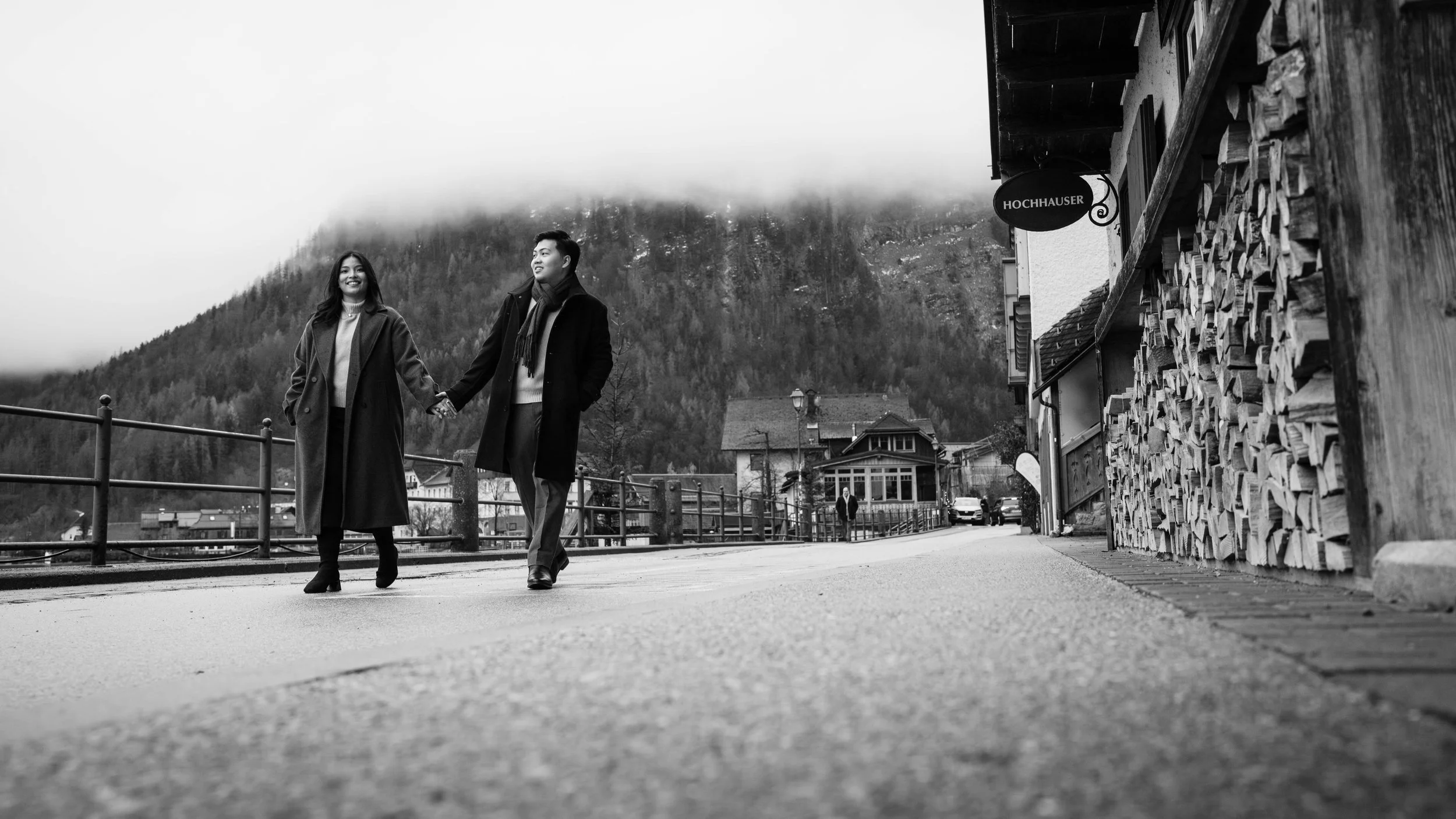 After Myrna said yes, we wandered through the village, stopping at some of Hallstatt’s most beautiful corners for photos—from the lakeside paths to the postcard views near Marktplatz Hallstatt. A truly special moment in one of the most romantic places in the world.