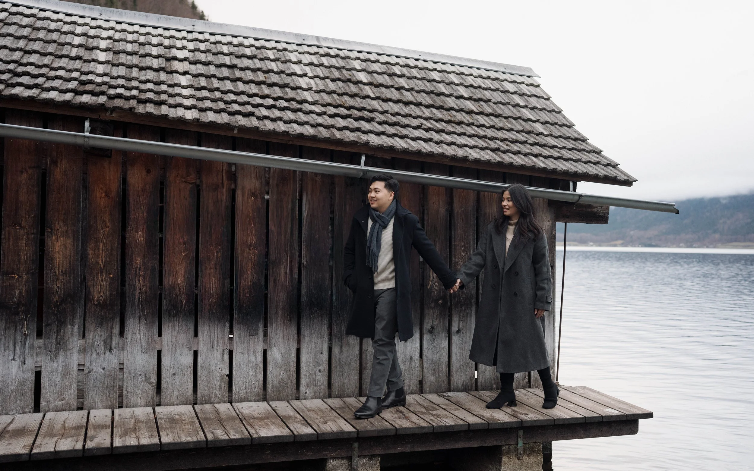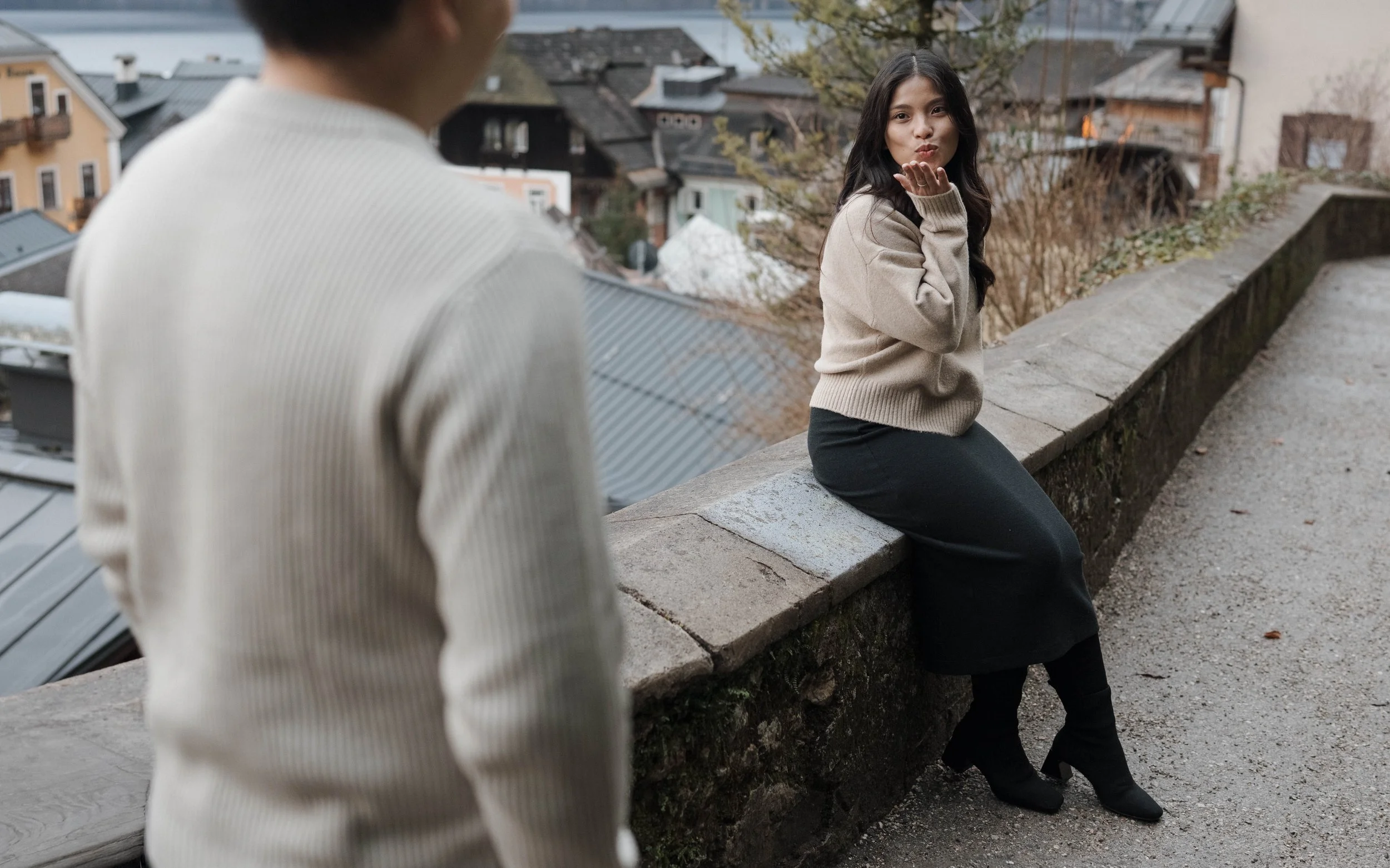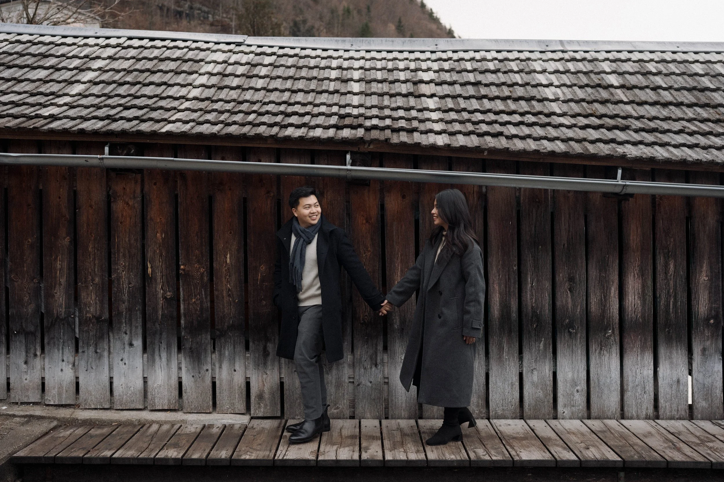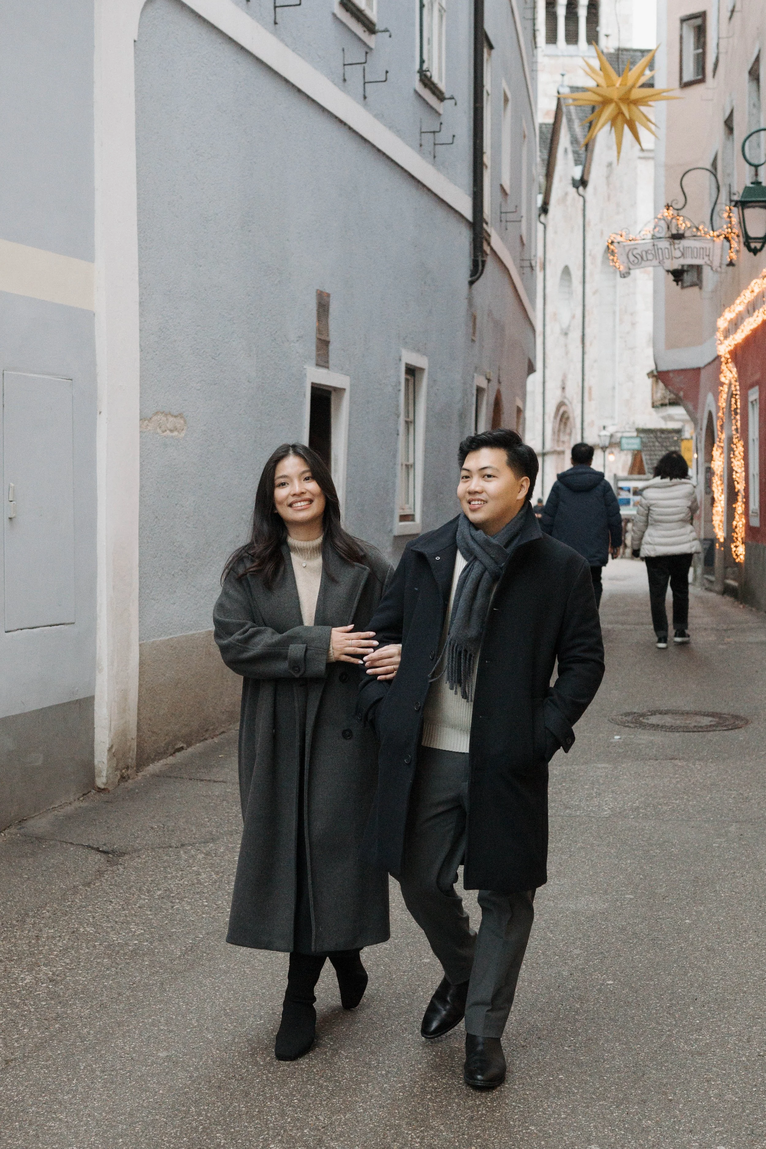 After Myrna said yes, we wandered through the village, stopping at some of Hallstatt’s most beautiful corners for photos—from the lakeside paths to the postcard views near Marktplatz Hallstatt. A truly special moment in one of the most romantic places in the world.