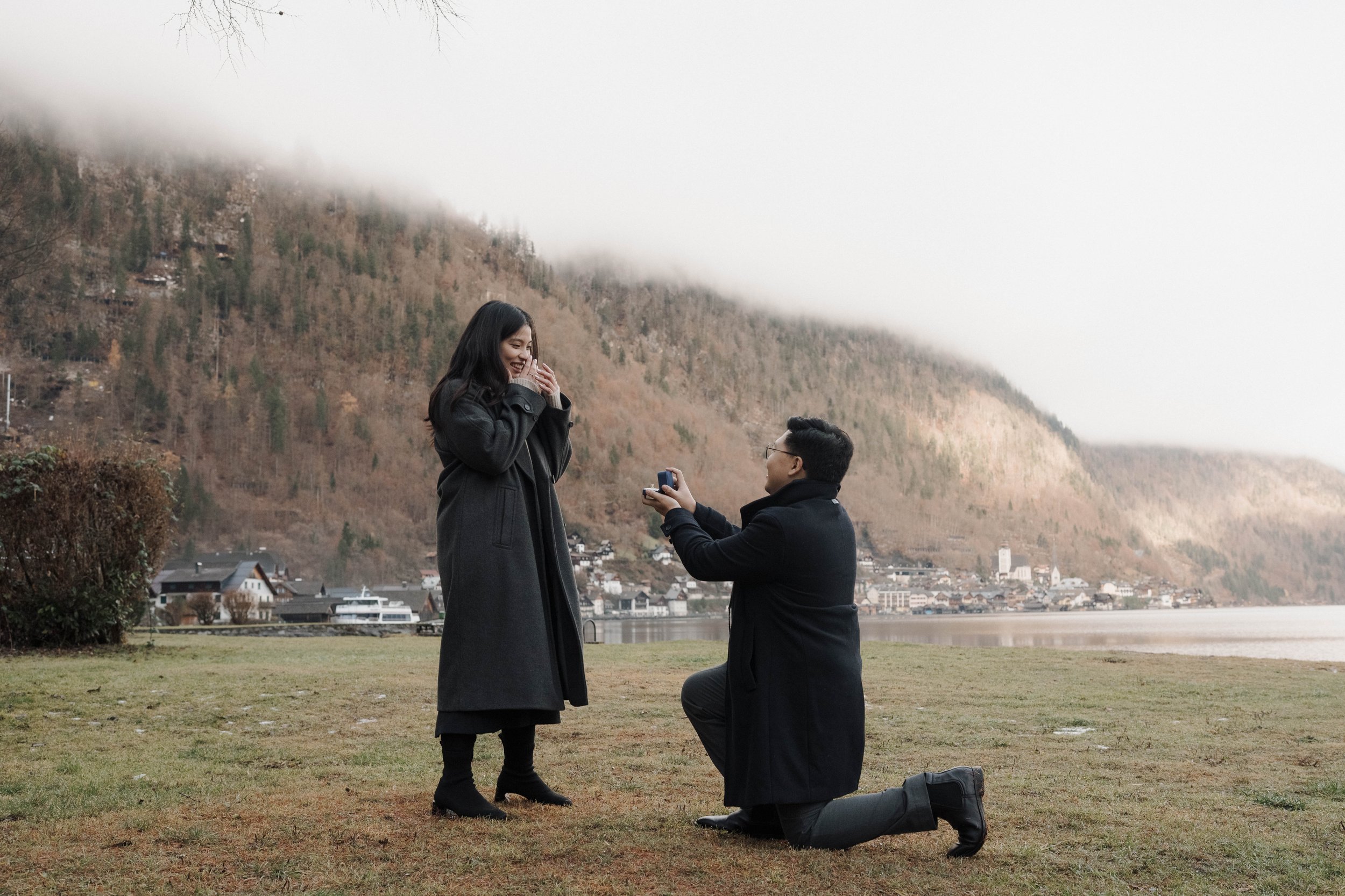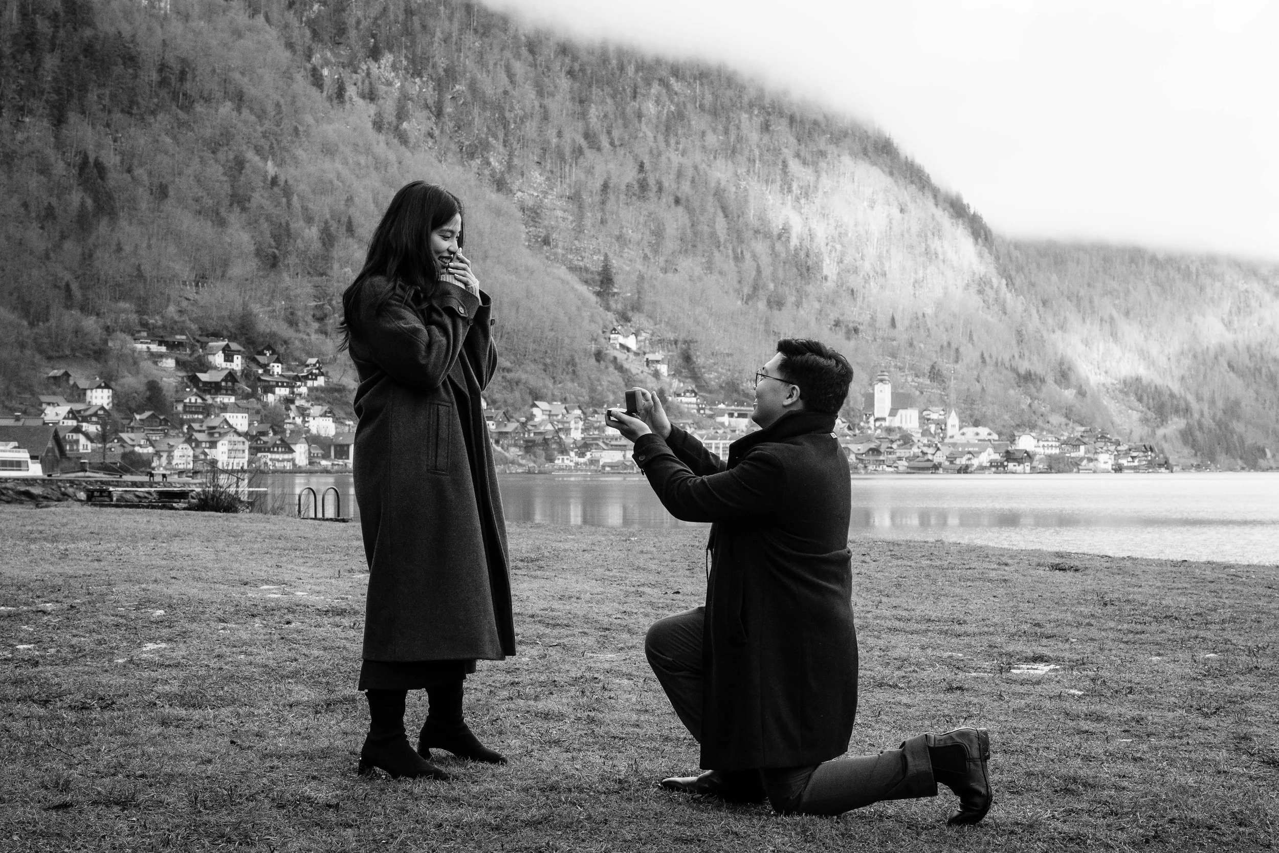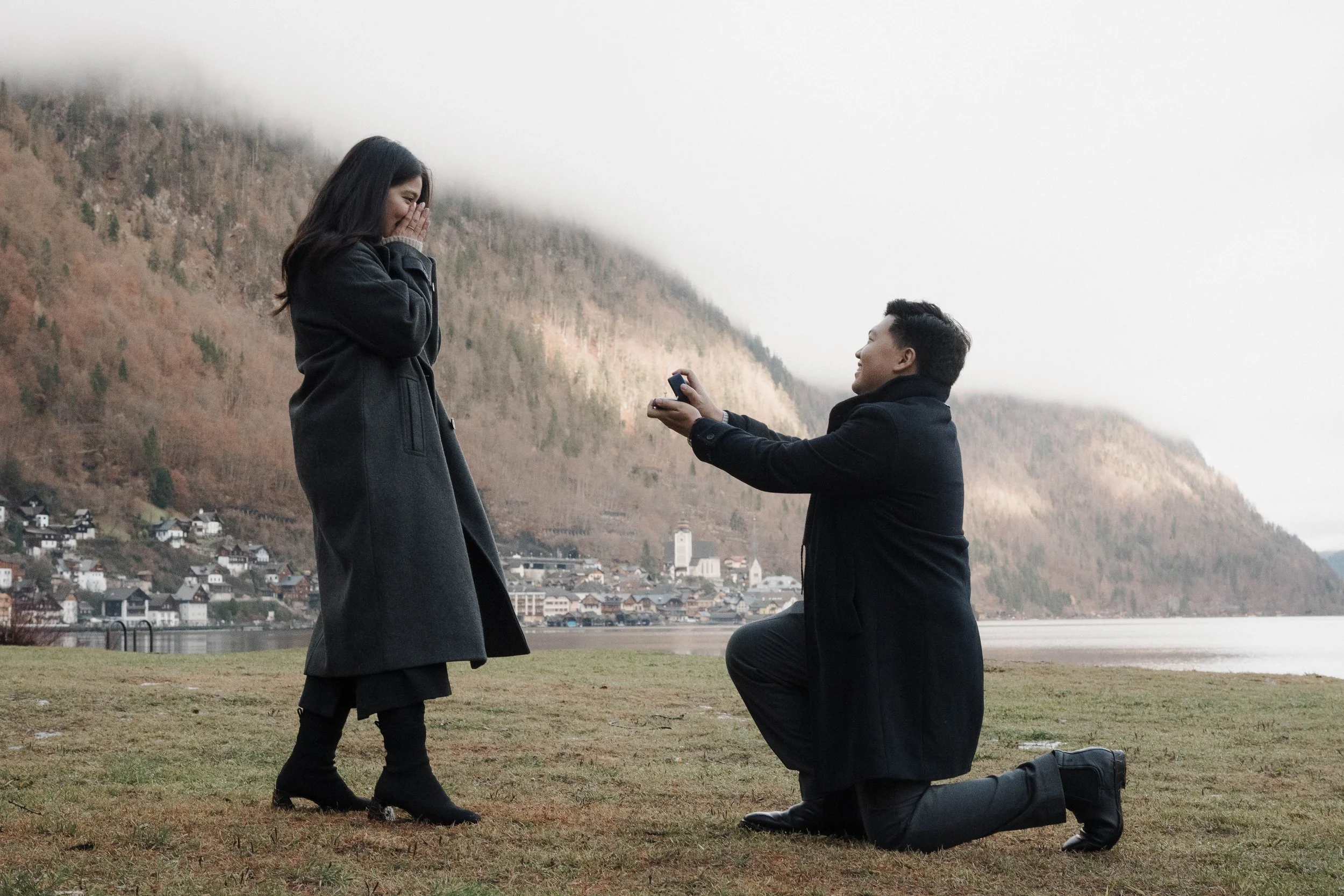 We worked together beforehand to choose the ideal spot, with the iconic views of Hallstätter See, and the charming streets setting the scene. Everything fell into place on the day—the rain held off, the atmosphere was calm, and the proposal couldn’t have gone any better.