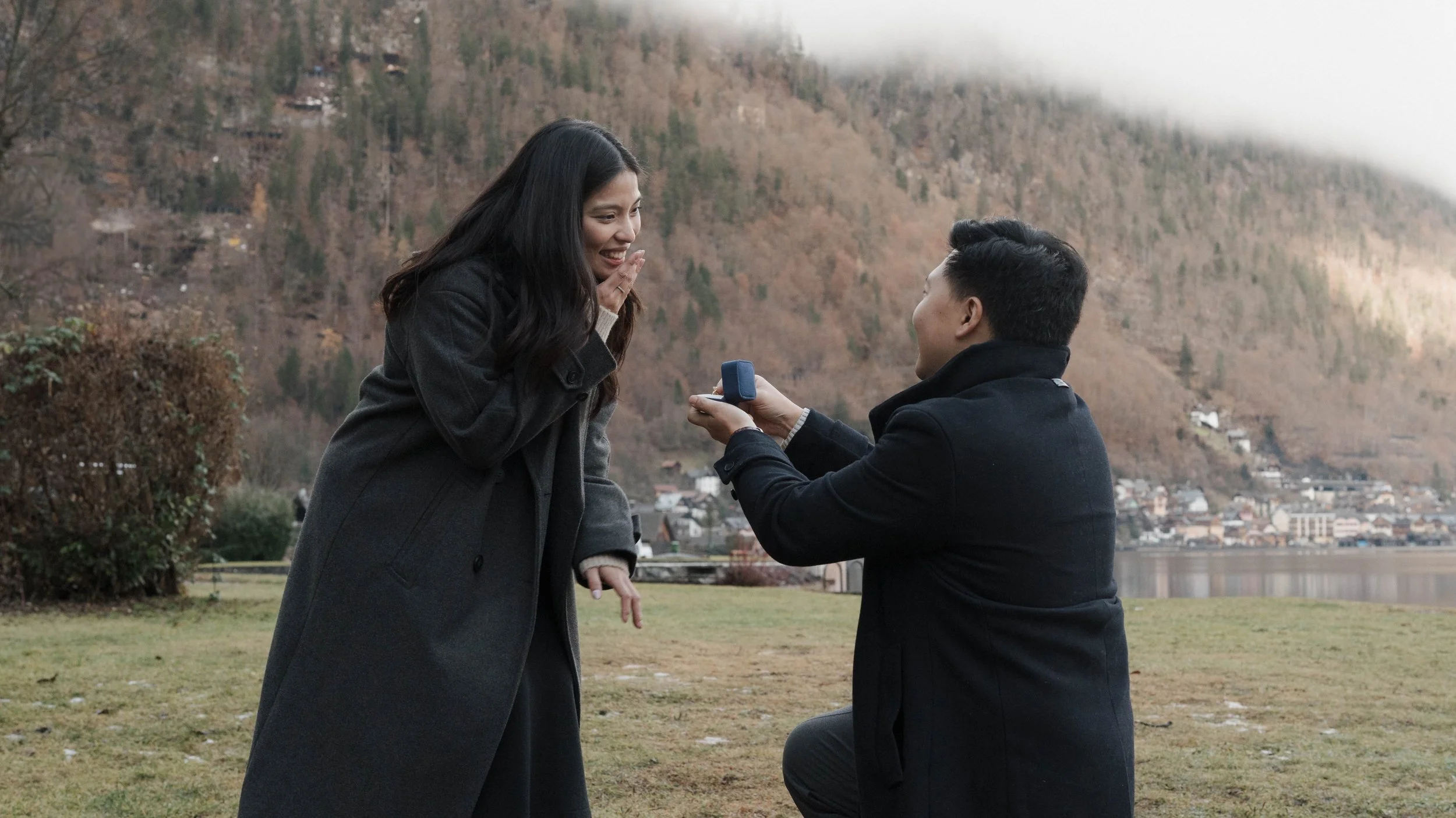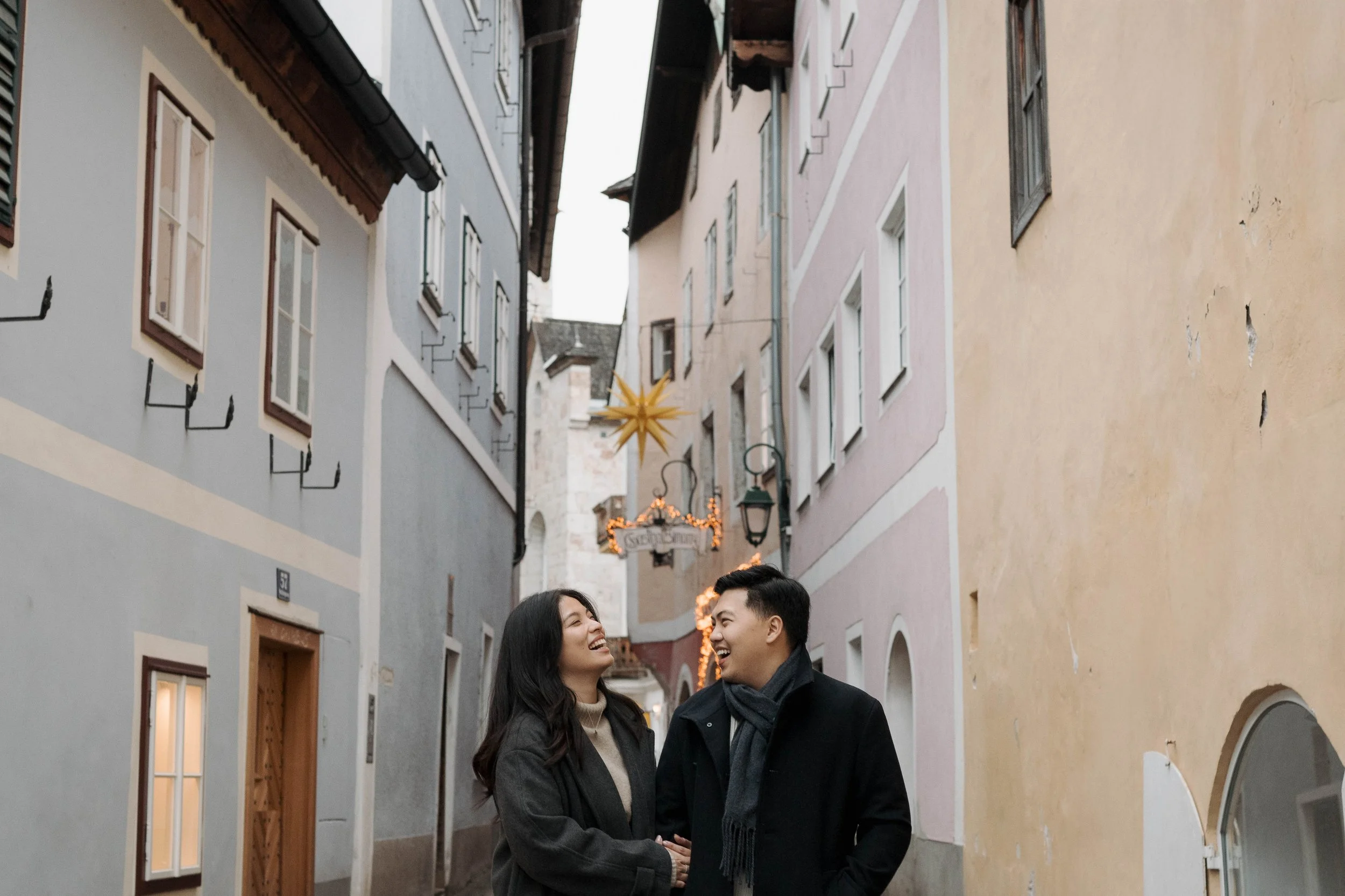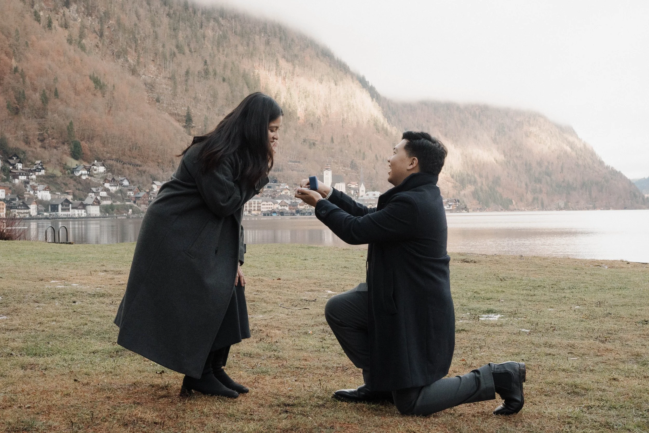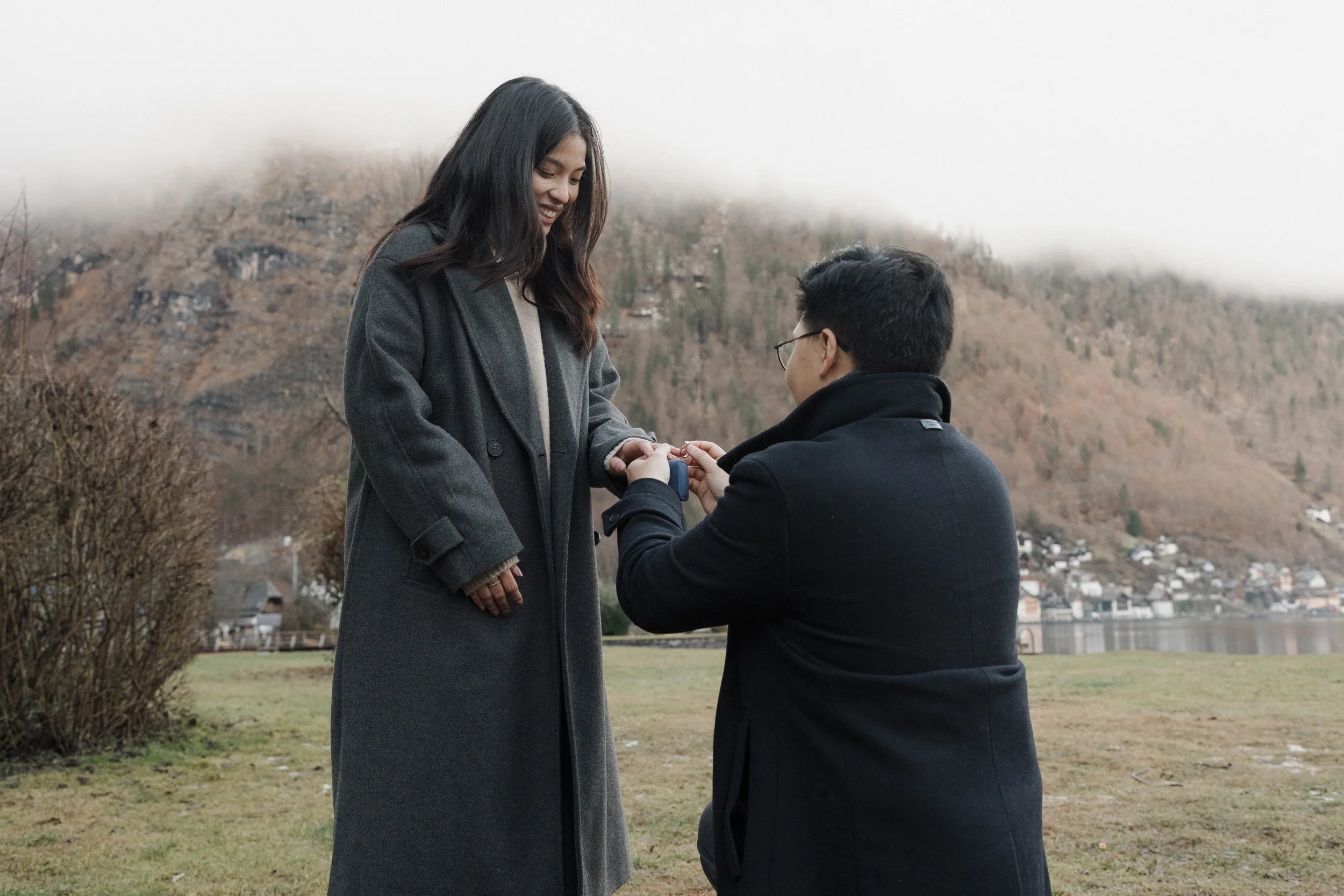 We worked together beforehand to choose the ideal spot, with the iconic views of Hallstätter See, and the charming streets setting the scene. Everything fell into place on the day—the rain held off, the atmosphere was calm, and the proposal couldn’t have gone any better.